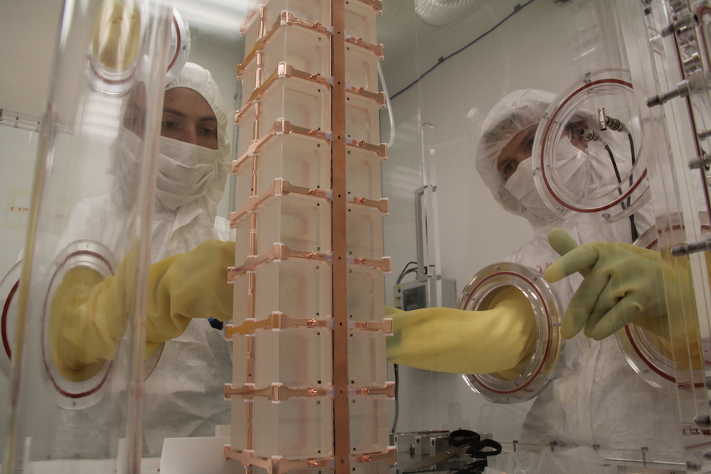 Today’s results represent data collected over two years from just one tower of tellurium dioxide crystals. By the end of the year, all 19 towers, each containing 52 crystals, will be online, increasing CUORE’s sensitivity by a factor of 20.