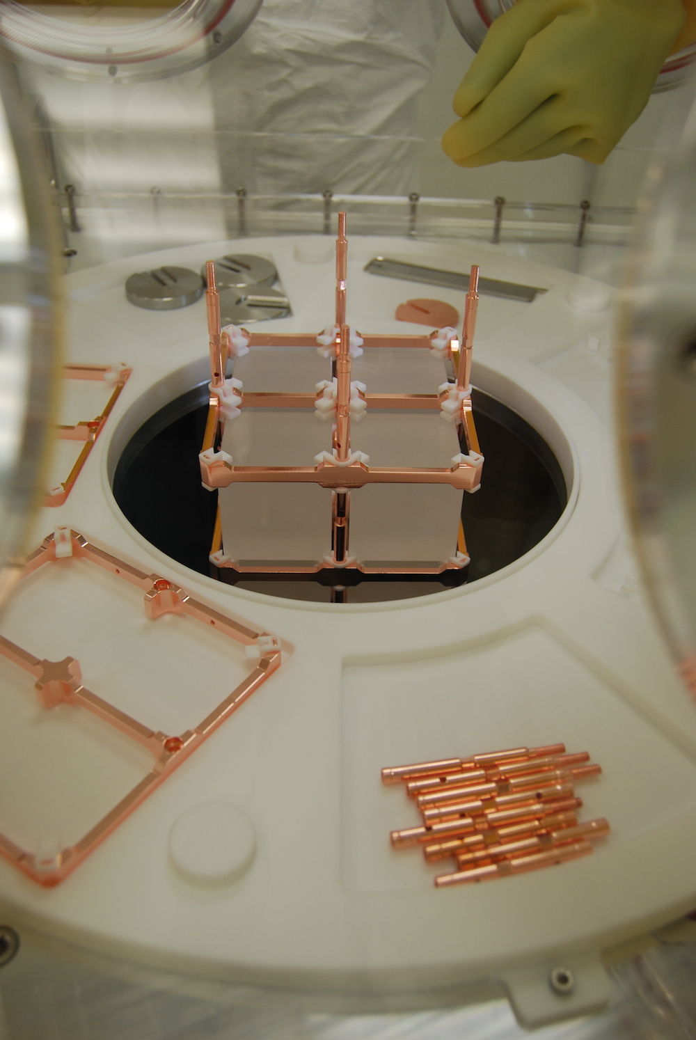 Second, the experiment, successfully demonstrates the performance of CUORE’s novel design—a detector made of towers of Rubik’s cube-sized crystals of tellurium dioxide. These towers are placed in a high-tech refrigerator that has been painstakingly decontaminated, shielded from cosmic rays, and cooled to near absolute zero.